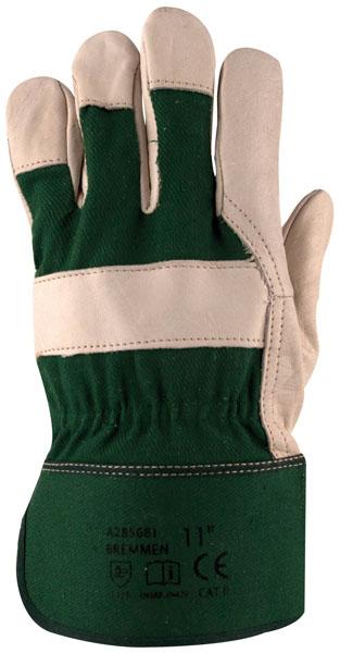 Комбинирани, зърнеста лицева бежова кожа, зелена памучна основа, подсилен маншет, размер 10.5"