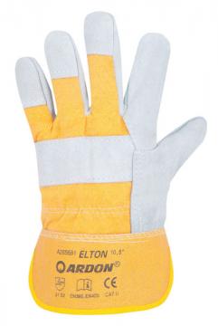 Комбинирани, сива цепена кожа, жълта памучна основа, цяла длан, подсилен маншет, размер 10.5"
