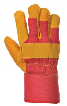 Изолиращи кожени ръкавици с пет пръста, изработени от жълта телешка кожа, изцяло подплатени с мъхест полар за допълнителна топлина при работа в студени услови.